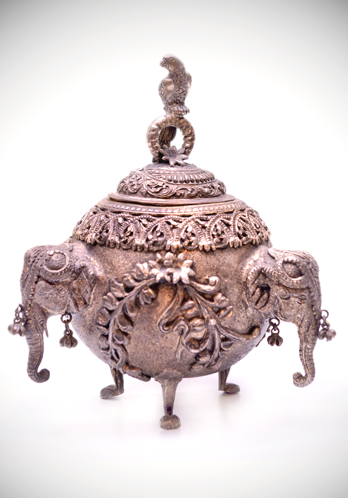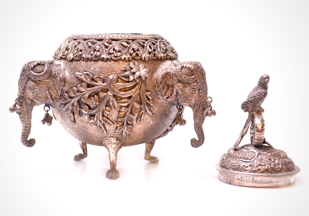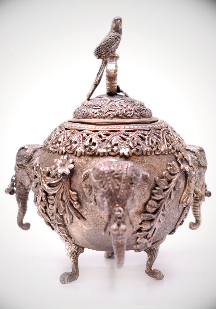 Box With 3 Faces Of Elephant and a Parrot On the Lid Hand Crafted In Alluminium Metal