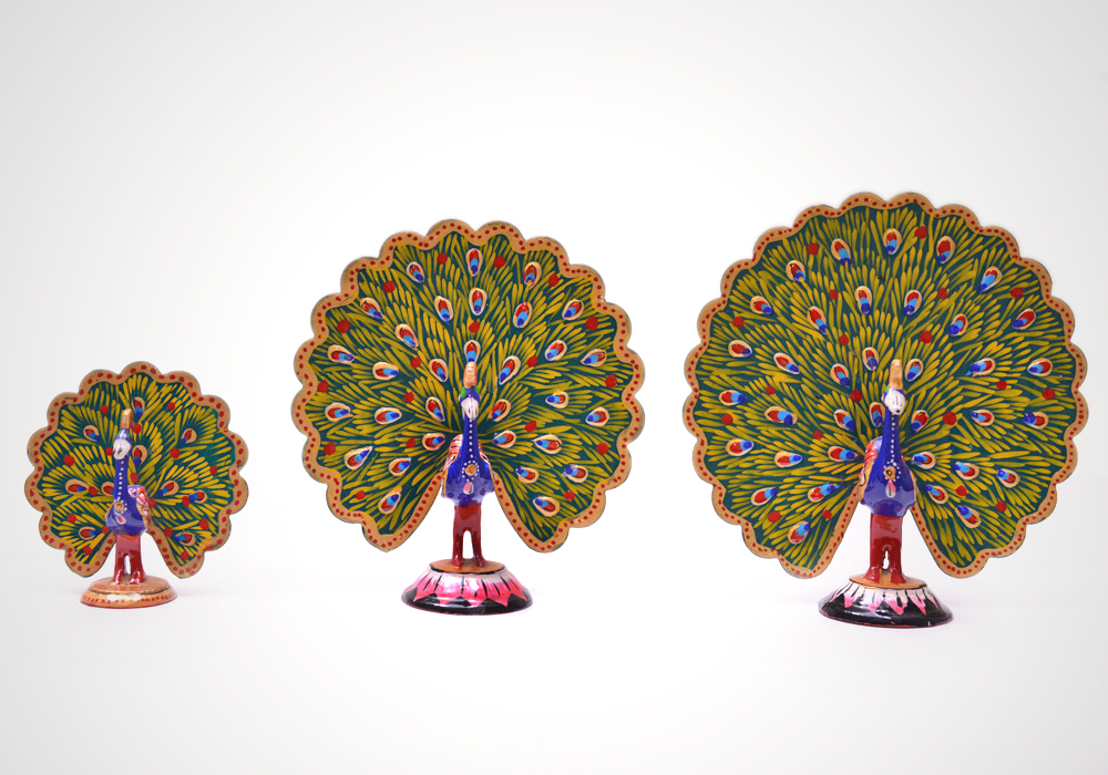 / Dancing Peacock Set Of 3 Hand Crafted and Painted In Alluminium Metal