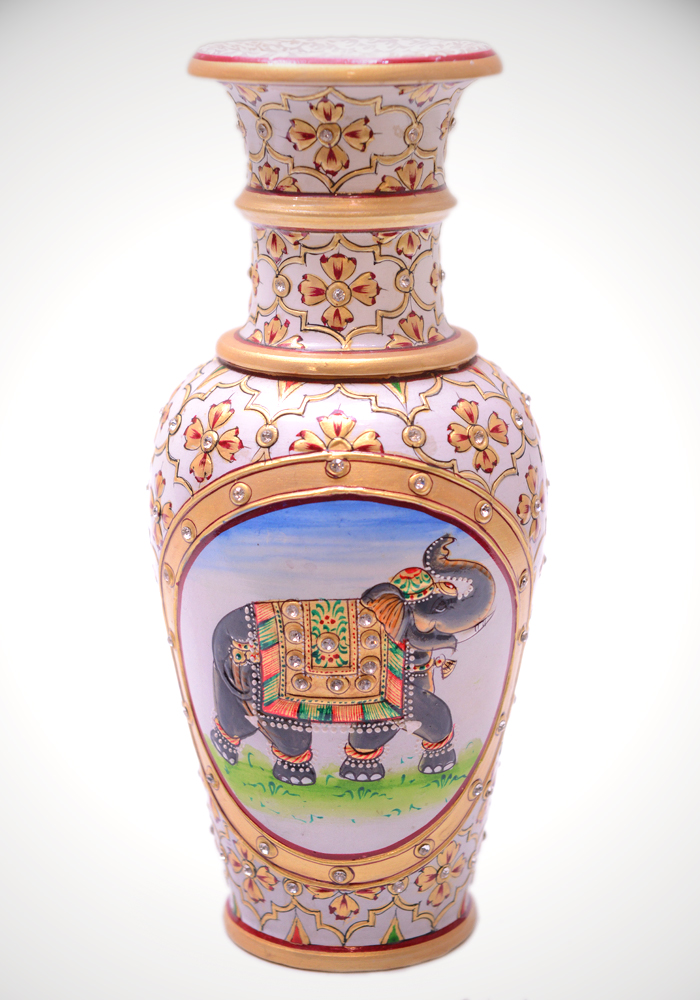 / Elephant Flower Vase Hand Crafted And Painted In White Marble
