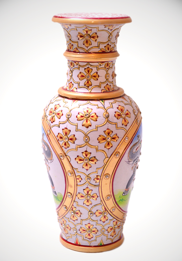 Elephant Flower Vase Hand Crafted And Painted In White Marble