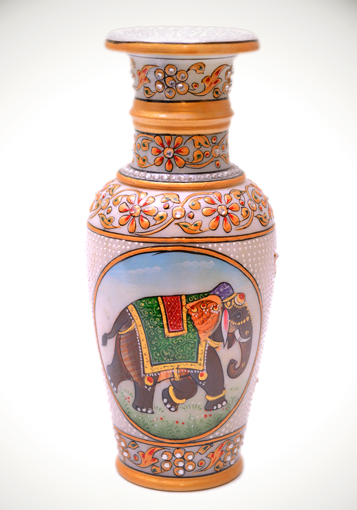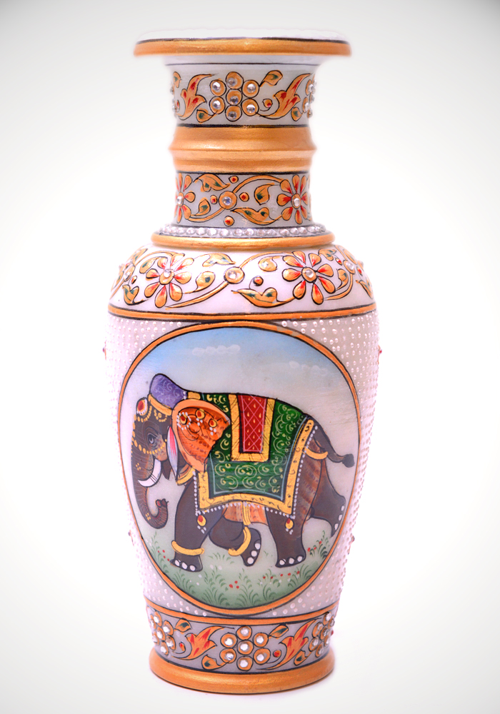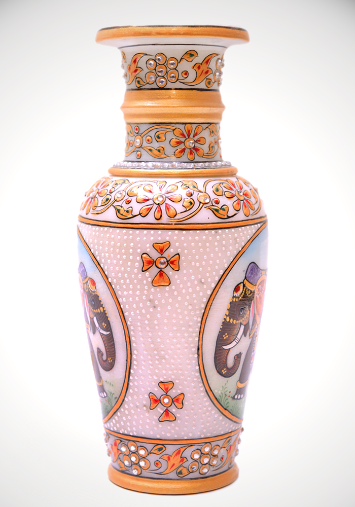 Elephant Flower Vase Hand Crafted And Painted In White Marble
