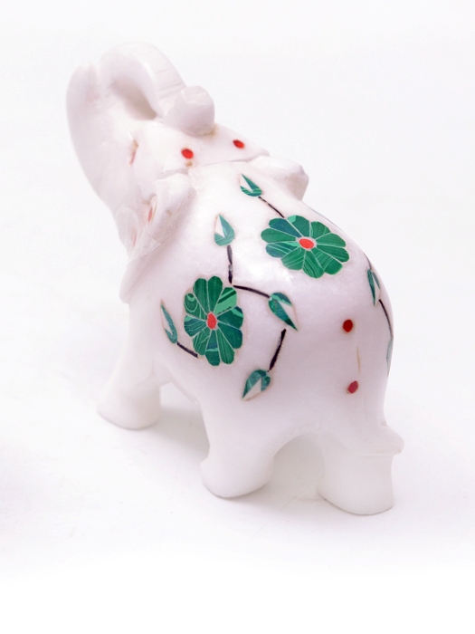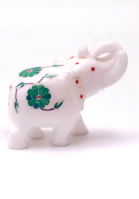 Elephant With Inlay stone work In White Marble