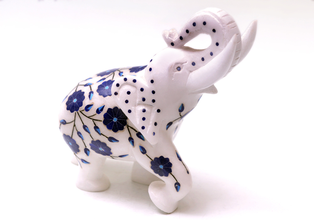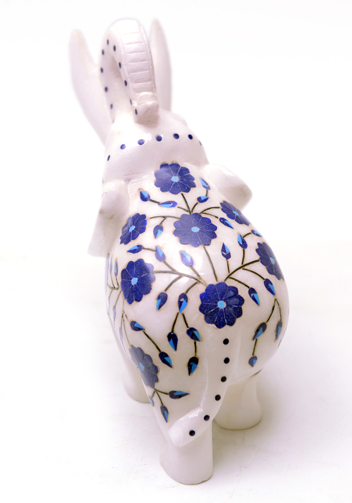 Elephant With Inlay stone work In White Marble