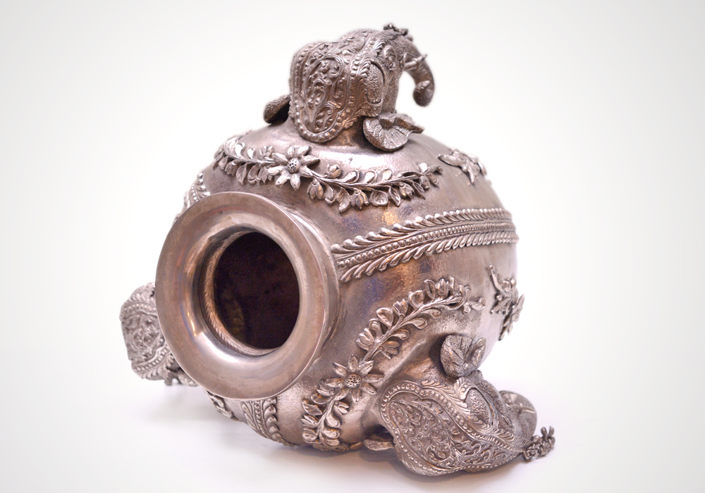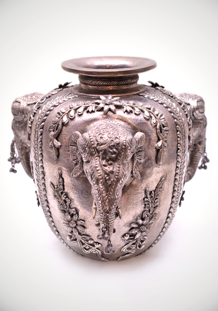 Flower Vase With 3 Faces Of Elephant Hand Crafted In Alluminium Metal