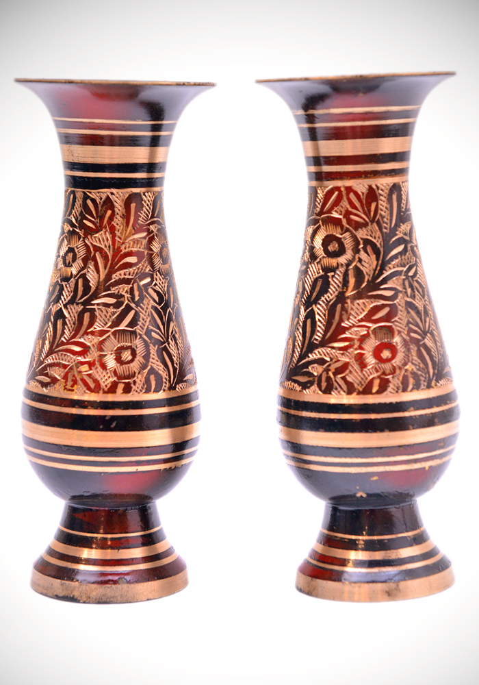 / Flower Vase with Hand chasel work set of 2 in Bronze