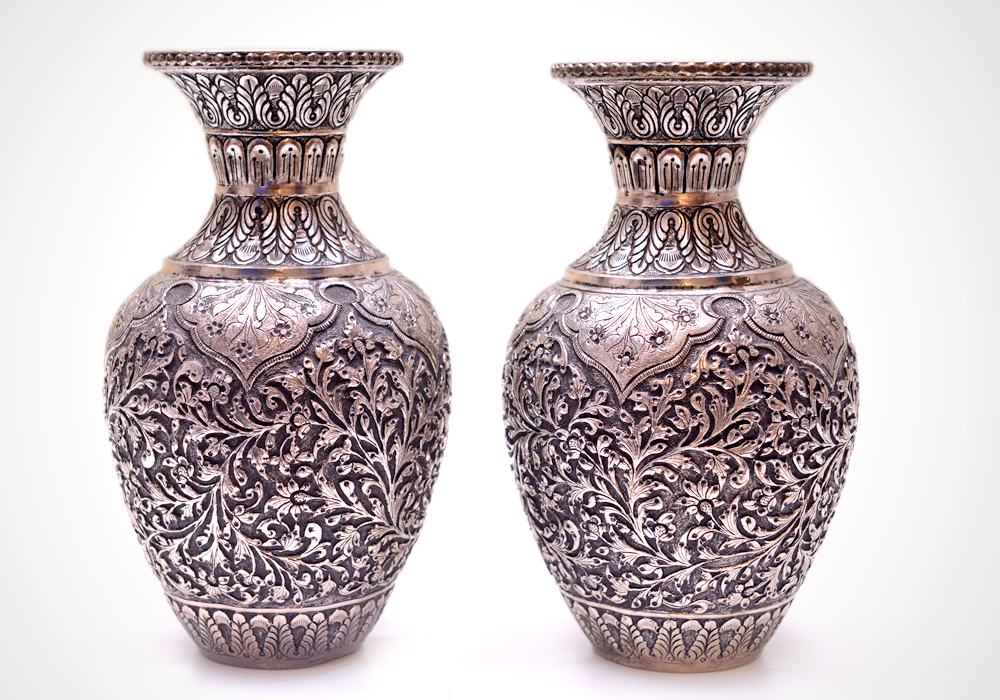 Flower Vcase Pair Hand Crafted In Alluminium Metal