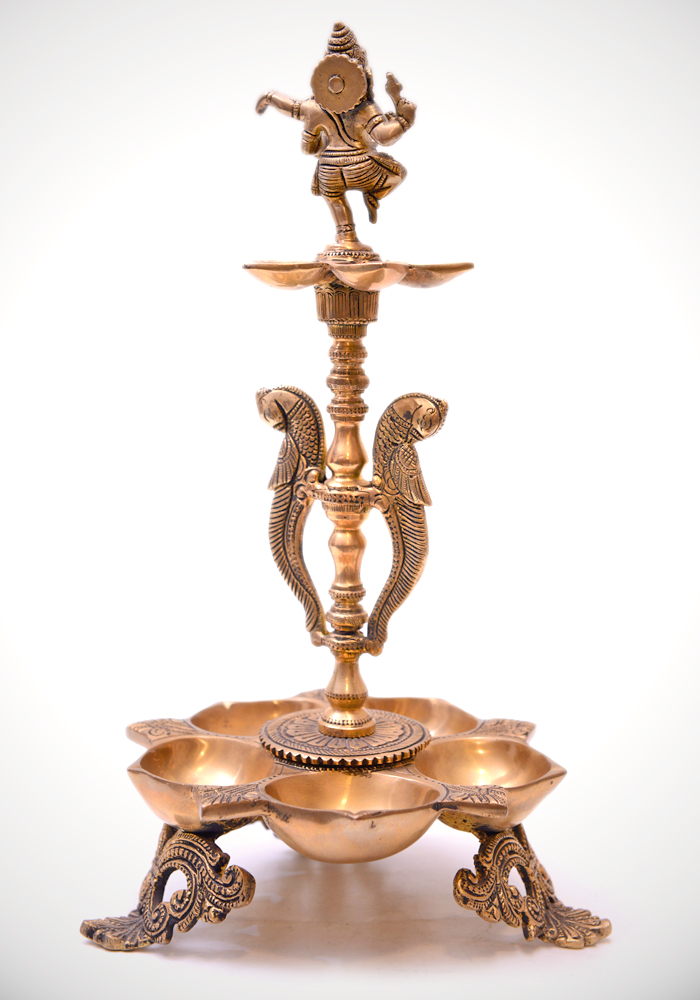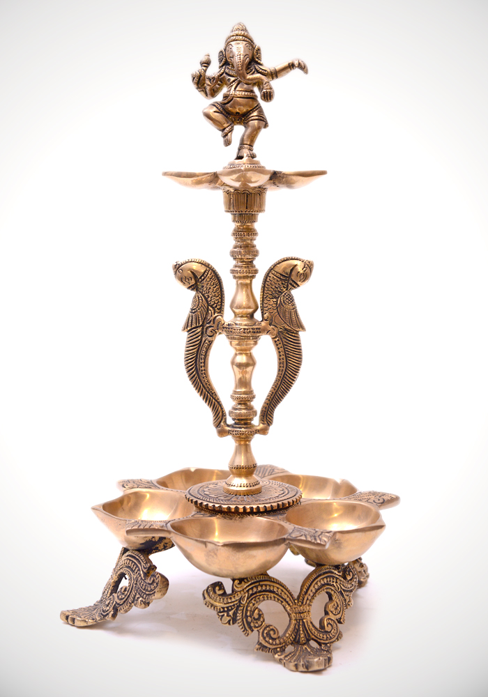 / God Ganesh Stand with Diyas in Bronze