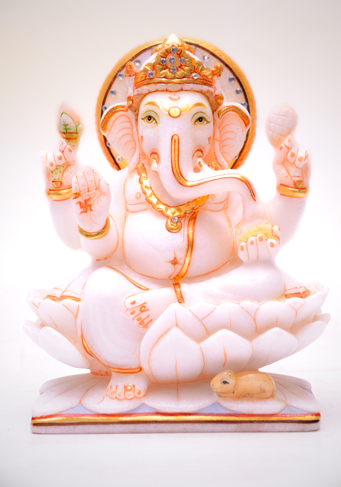 God Ganesha Hand Crafted And Painted In White Marble