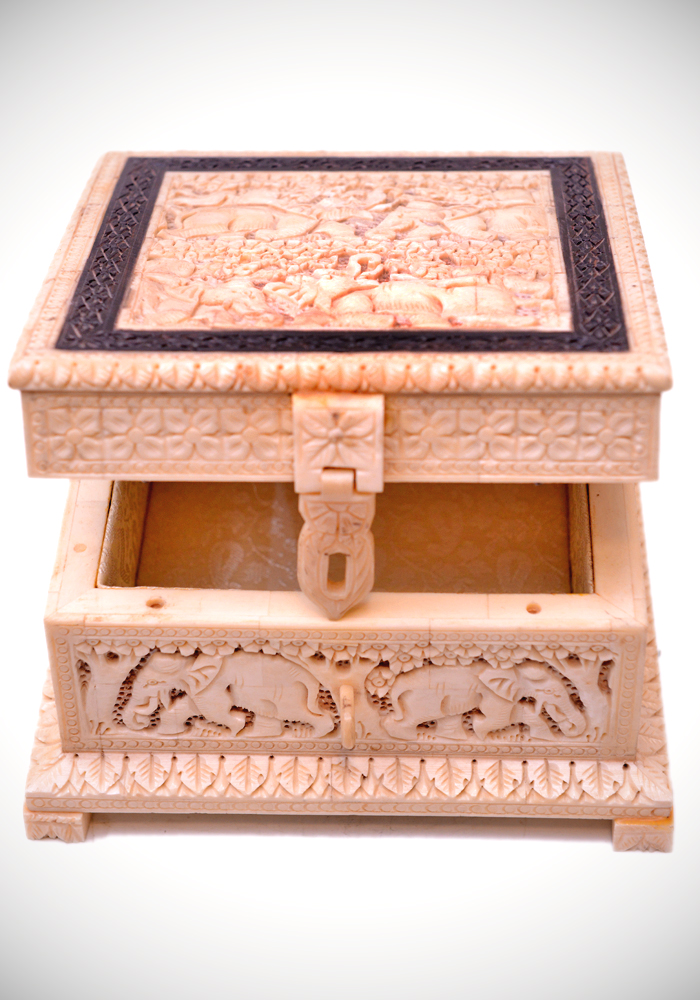 Hand Carved Box In Camel Bone