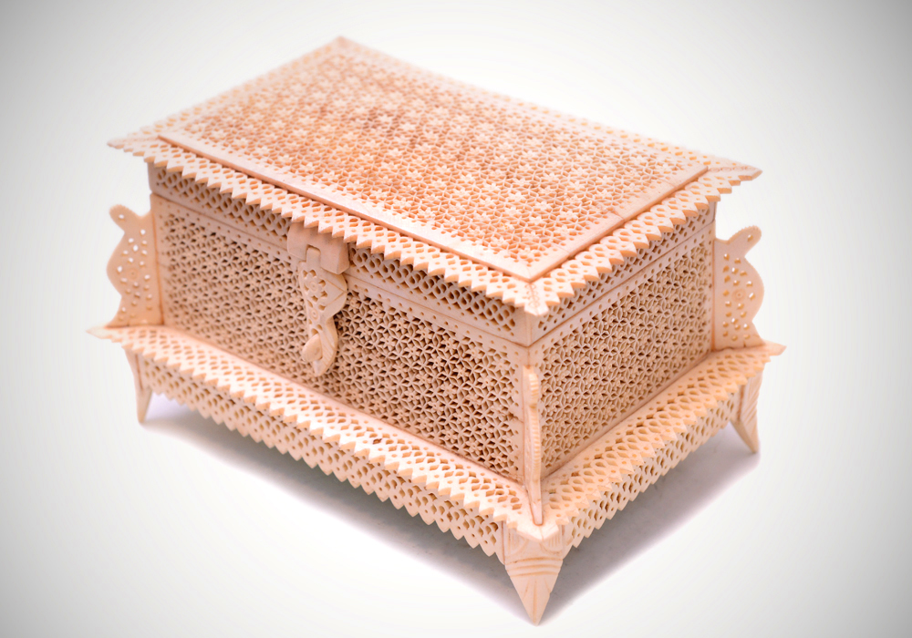 Hand Carved Under cut Box In Camel Bone