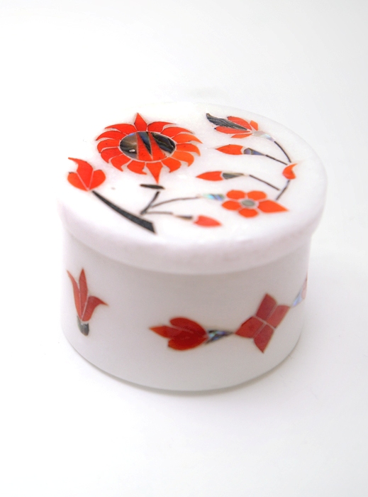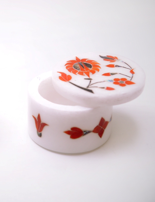 / Jewellery Box With Inlay Coral,Shell pearl Stones Work In White Marble