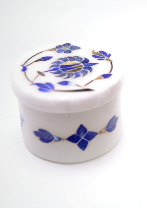 / Jewellery Box With Inlay Lepis,Shell pearl Stones Work In White Marble