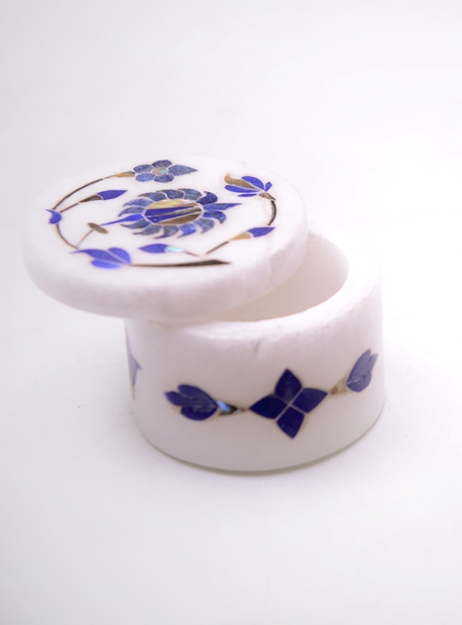 Jewellery Box With Inlay Lepis,Shell pearl Stones Work In White Marble