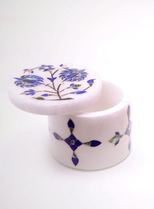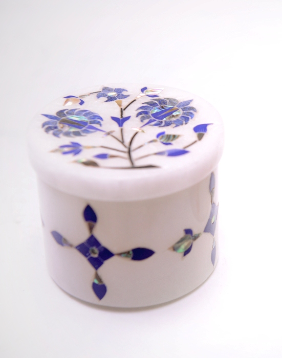 Jewellery Box With Inlay Lepis,Shell pearl Stones Work In White Marble