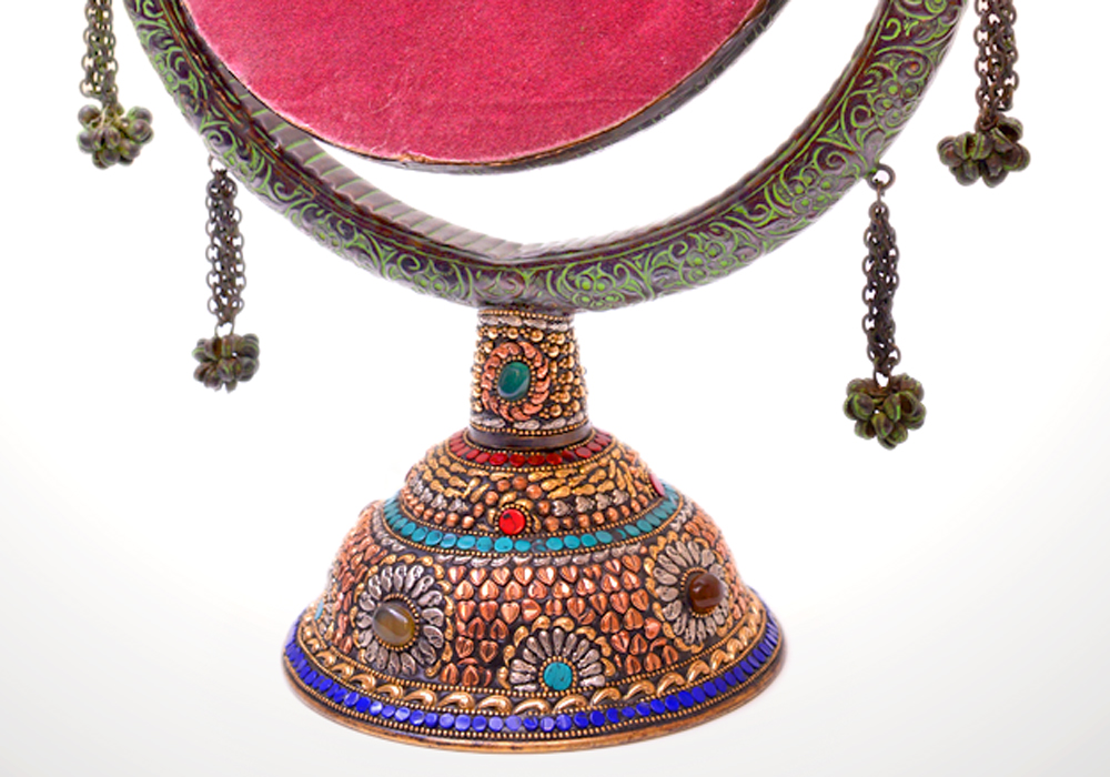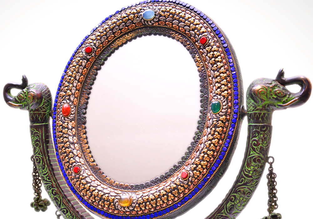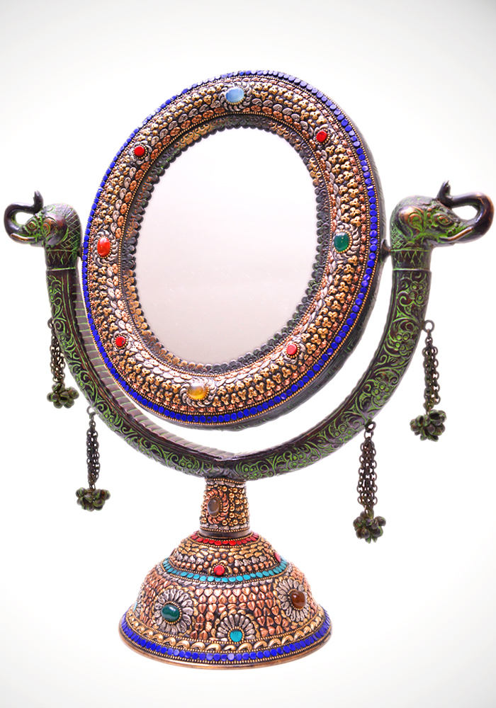 Mirror Standing With Embosed Real Stones Hand Carfted In Alluminium Metal