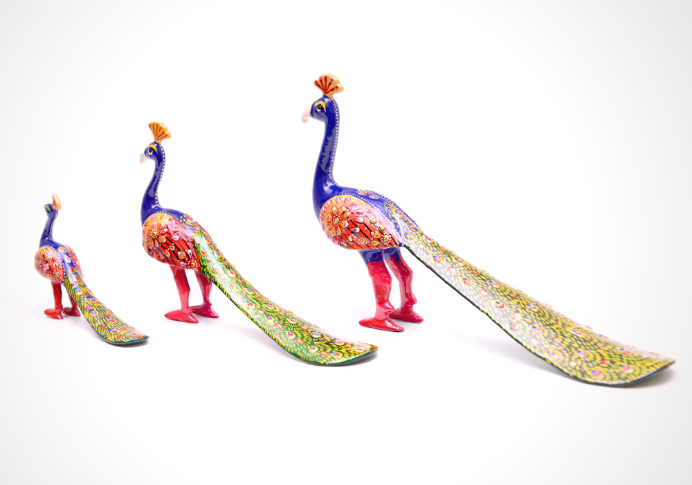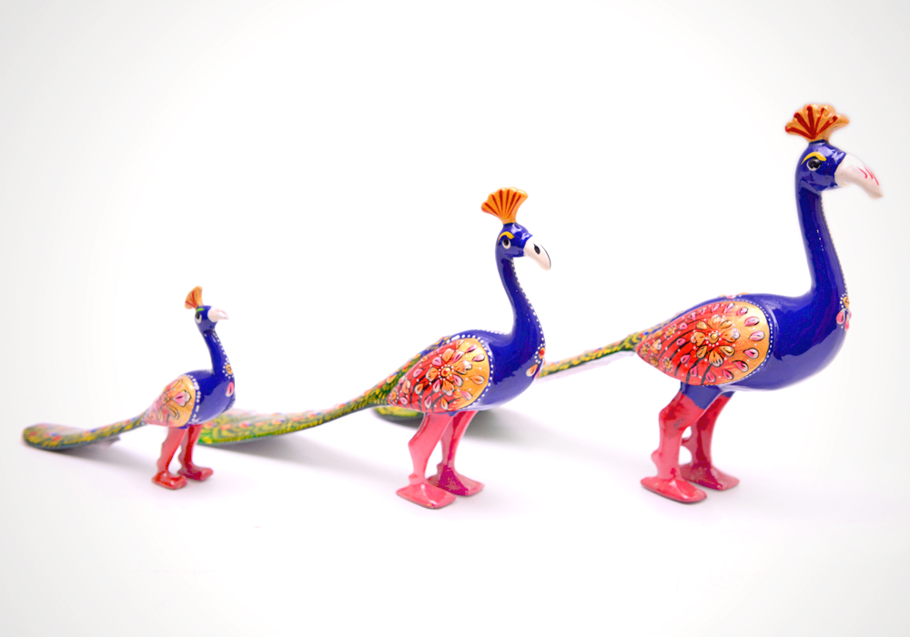 Peacock Set Of 3 Hand Crafted and Painted In Alluminium Metal