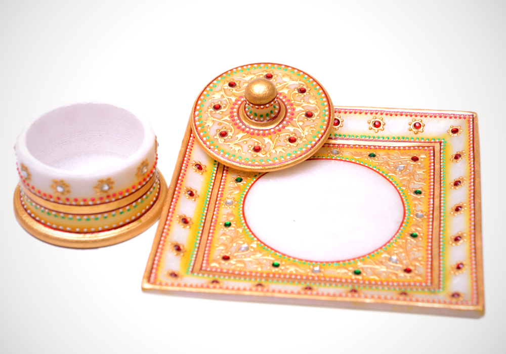 / Refreshment tray with one container Hand Crafted And Painted In White Marble