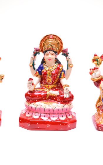 God Ganesha ,Goddess Laxmi and Goddess Saraswati Set Hand Crafted and Painted In Alluminium Metal