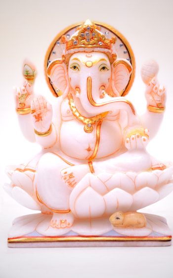 God Ganesha Hand Crafted And Painted In White Marble