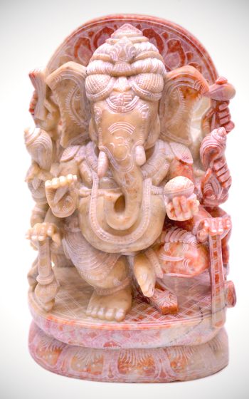 God Ganesha Set of 5 with the Indian Musical Instruments Hand Crafted And Painted In Real Jade Stone