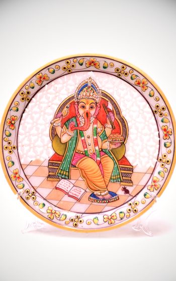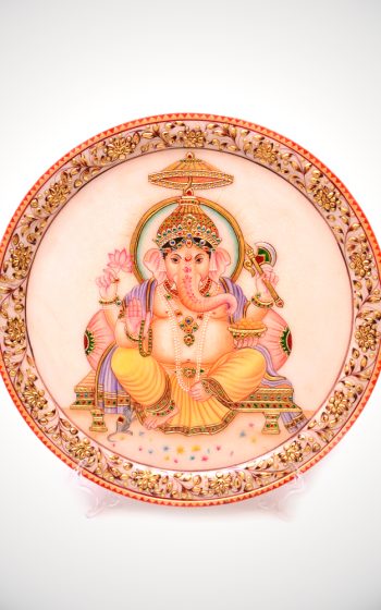 God Ganesha Show Piece Plate Hand Carfted And Painted In white Marble
