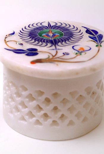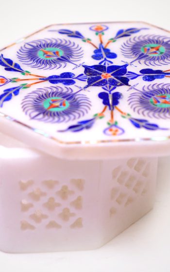 Jewellery Box With Inlay Lepis,Shell pearl Stones Work In White Marble