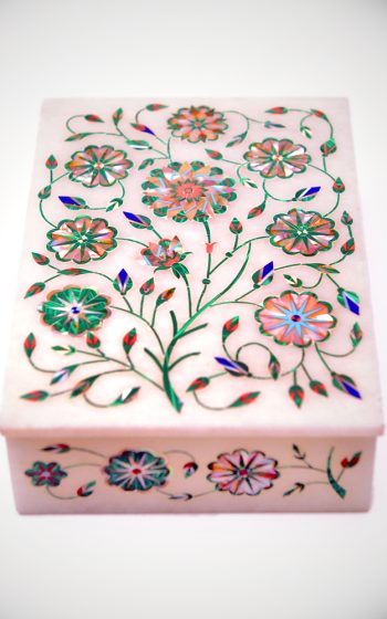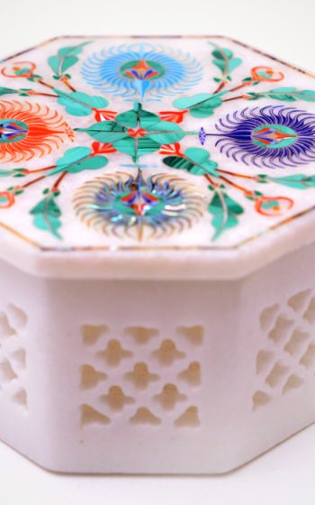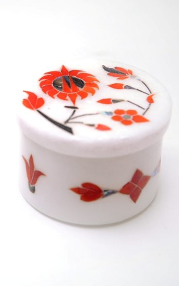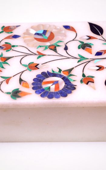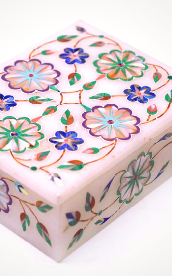Jewellery Box With Inlay Coral,Shell pearl Stones Work In White Marble