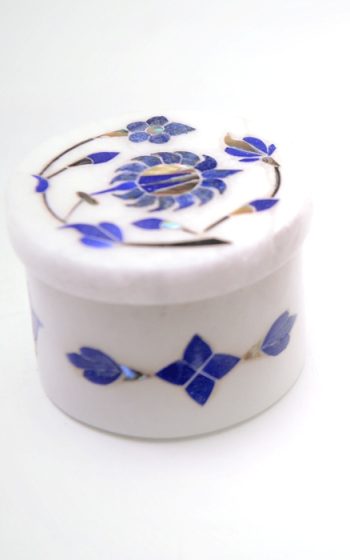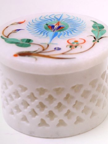 Jewellery Box With Inlay Lepis Stones Work In White Marble Total Stones (592)