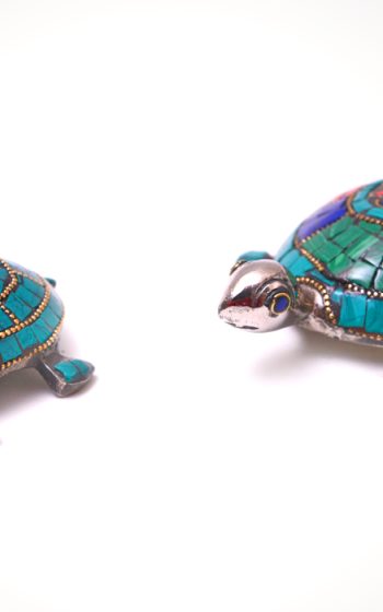 Tortoise Set Of 2 With The Real Stones Hand Crafted In Alluminium Metal