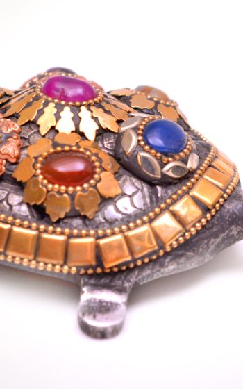 Tortoise With The Real Stones Hand Crafted And Gold Painted In Alluminium Metal