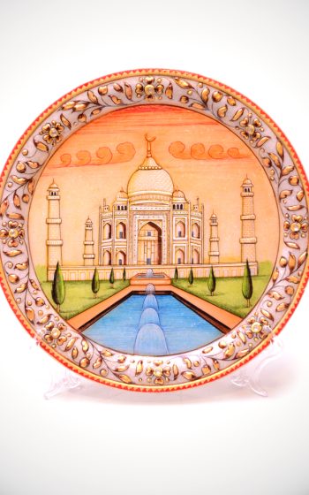 Tajmahal Show Piece Plate Hand Carfted And Painted In white Marble